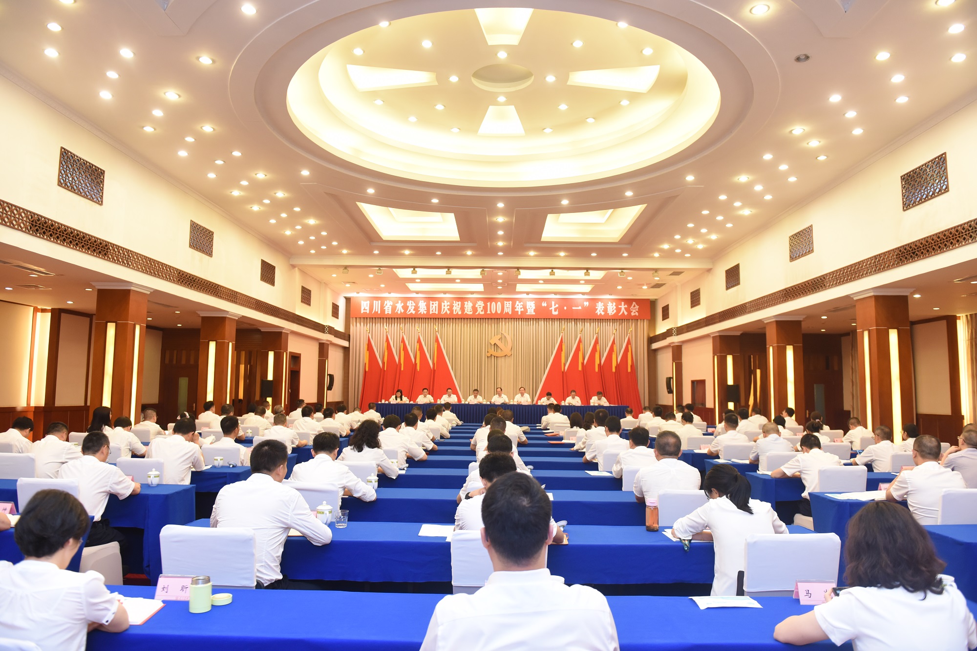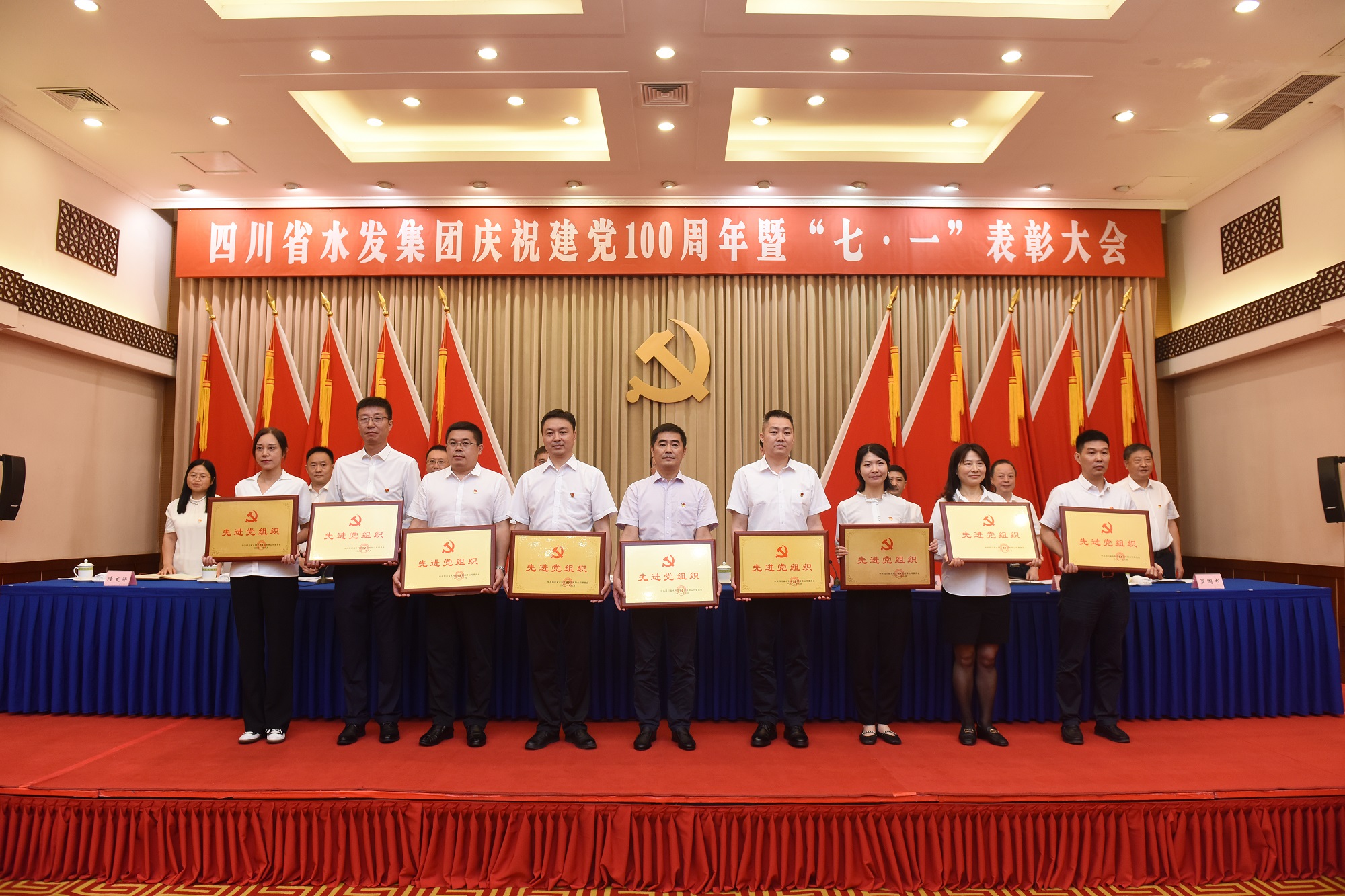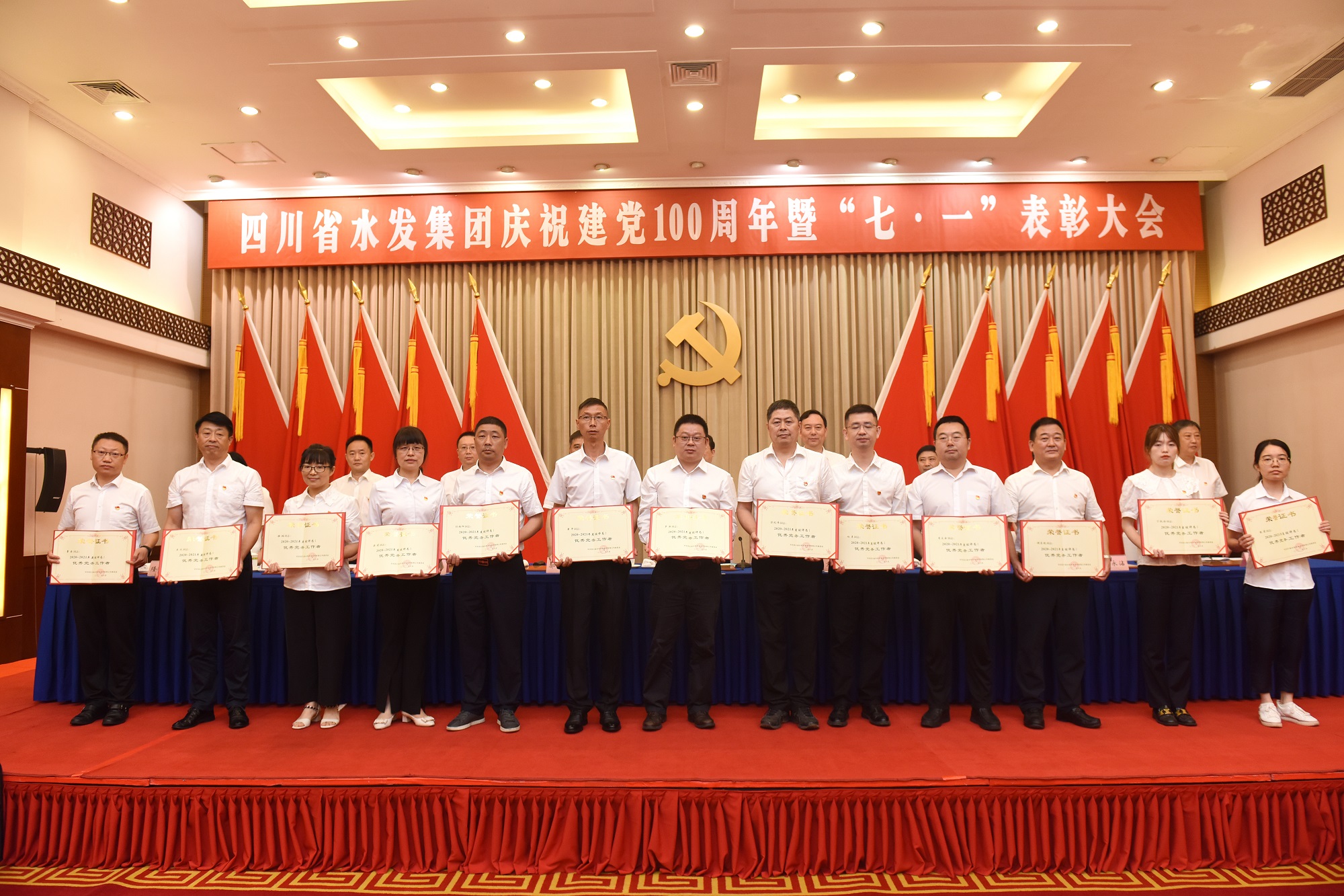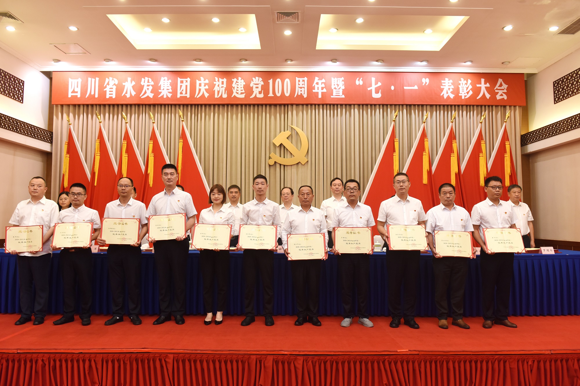 為隆重慶祝中國共產黨成立100周年,回顧黨的光輝歷程,激勵各級黨組織和廣大黨員牢記初心使命,服務集團高質量發展,6月25日上午,四川省水利發展集團有限公司在成都召開慶祝建黨100周年暨“七·一”表彰大會。集團黨委書記、董事長鐘杰同志及集團領導班子成員出席會議。集團下屬企業黨委班子成員,受集團表彰的優秀共產黨員、優秀黨務工作者、先進黨組織代表,集體總部全體黨員參加會議。集團黨委委員、紀委書記吳軍同志主持會議。