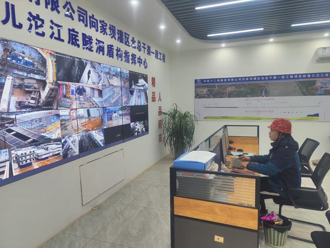 中午的團年飯過后,大家又趕緊投入到項目的建設中,生怕延誤了工期,這堅守的百余名建設者中就有劉宇琦。劉宇琦作為向家壩灌區北總干渠一期工程盾構分部副總工程師,肩負著整個項目部現場的管理工作,施工方案的制定、優化,現場施工進度控制。午飯過后,劉宇琦就匆匆趕到控制室,查看盾構機每一步掘進參數,生怕哪一個環節出現紕漏影響工程質量?!澳壳拔覀冐垉恒姿矶矗丫蜻M完成432米,這個是已經超過我們進度計劃的,計劃在2月底下穿岷江,但這也是到了關鍵性的階段?!眲⒂铉榻B到。