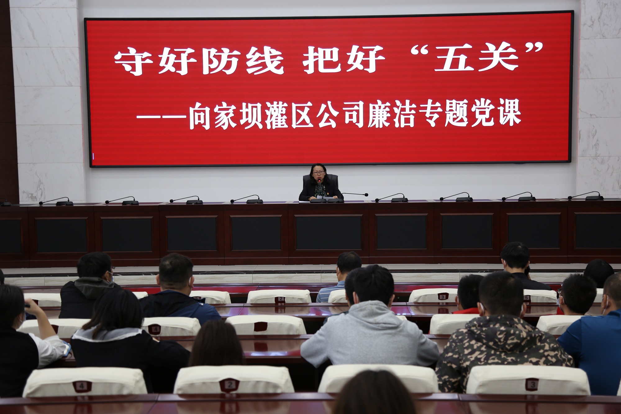 最后,李松穗以“守好防線 把好‘五關’”為題,從守好政治關、權力關、交往關、生活關、親情關五個方面為年輕干部上了一堂廉潔專題黨課。大家紛紛表示,此次廉潔警示教育活動內容豐富,從正反兩面給了大家警示和教育,在今后的工作中將不忘初心、繼續前行,堅守紀律底線,不觸法律紅線,認真履職盡責,切實做到忠誠、干凈、擔當,以實際行動助推工程建設,共建“廉潔工程。”