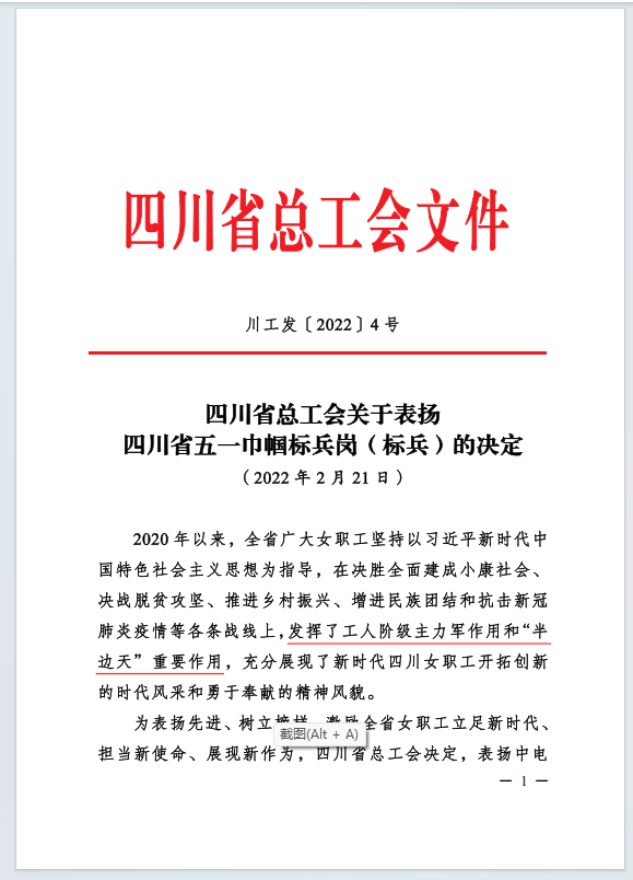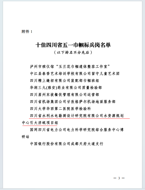 設(shè)計(jì)公司水規(guī)劃中心引大濟(jì)岷項(xiàng)目組榮獲“十佳四川省五一巾幗標(biāo)兵崗”稱號(hào)