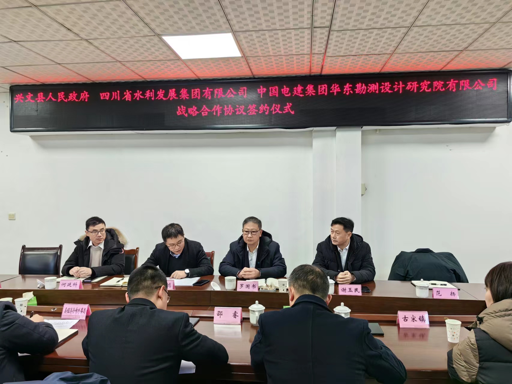 1月16日,集團與興文縣人民政府、中電建華東院戰(zhàn)略合作簽約儀式在興文縣人民政府三樓會議室舉行。集團董事羅國書、興文縣人民政府副縣長邵睿、中國電建集團華東勘測設計研究院有限公司西南區(qū)域總部總經(jīng)理張發(fā)鴻出席儀式。
