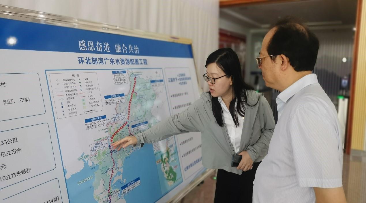 鐘杰董事長先后觀看了環北部灣廣東水資源配套工程展板,聽取了工程項目介紹,并與項目業主廣東粵海粵西供水有限公司舉行座談。