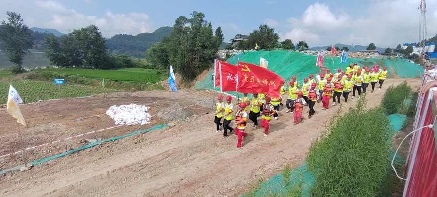本次演練實景模擬了嘉陵江一級支流東河上游因連續強降雨出現超標準洪水導致該工程跨河的觀音寺渡槽施工區域出現險情,重點演練了預警預報、人員設備撤離、醫療應急救護、基坑邊坡垮塌處置、圍堰管涌處置、火災救援等科目,檢驗了應對突發事件的預警、響應、保障及救援能力,體現了圍繞實戰、突出重點、注重實效的總要求。