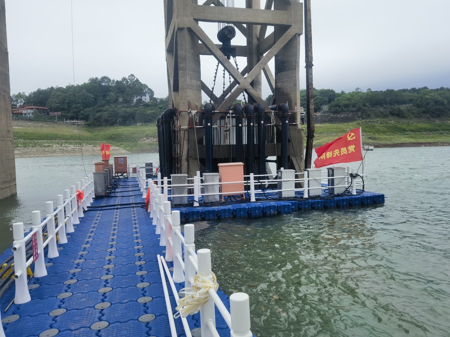 根據(jù)確定的應急供水方案,在雙溪水庫庫內(nèi)取水口設置臨時應急抽水設施供水,采用庫內(nèi)便攜式浮箱潛水泵布置,調(diào)配1000KW移動供電設備和20余臺(套)大功率抽水機泵保障應急供水,全天24小時不間斷向自貢城區(qū)、榮縣縣城及下游沿途鄉(xiāng)鎮(zhèn)補水供水95天,抗旱輸水量最高達23萬m3/天,累計供水2208.05萬m3,有效解決了自貢城鄉(xiāng)77萬人缺水需求,有力保證了城鄉(xiāng)居民用水安全,用實際行動彰顯了國企社會責任新?lián)敗?/p>