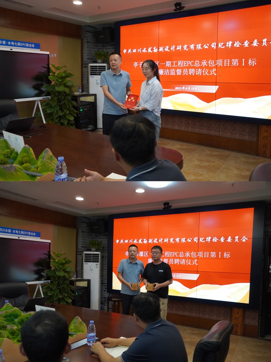 設計公司紀委聘任亭子口灌區EPC總承包項目第Ⅰ、Ⅱ標廉潔監督員