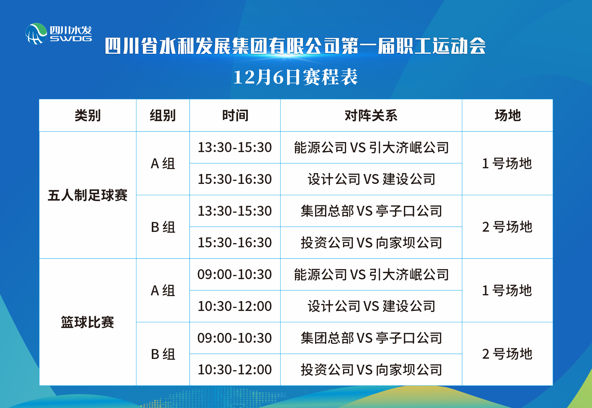 此次運動會分為2個階段。12月5日-12月8日為預(yù)賽階段,比賽項目包括:五人制足球賽、籃球賽、羽毛球混合團體賽、乒乓球混合團體賽,來自集團總部及7個下屬公司共220余名運動員以循環(huán)賽和排位賽的方式角逐4個類別,8個決賽名額。12月9日,將舉行此次運動會開閉幕式,球類比賽決賽以及趣味運動會。