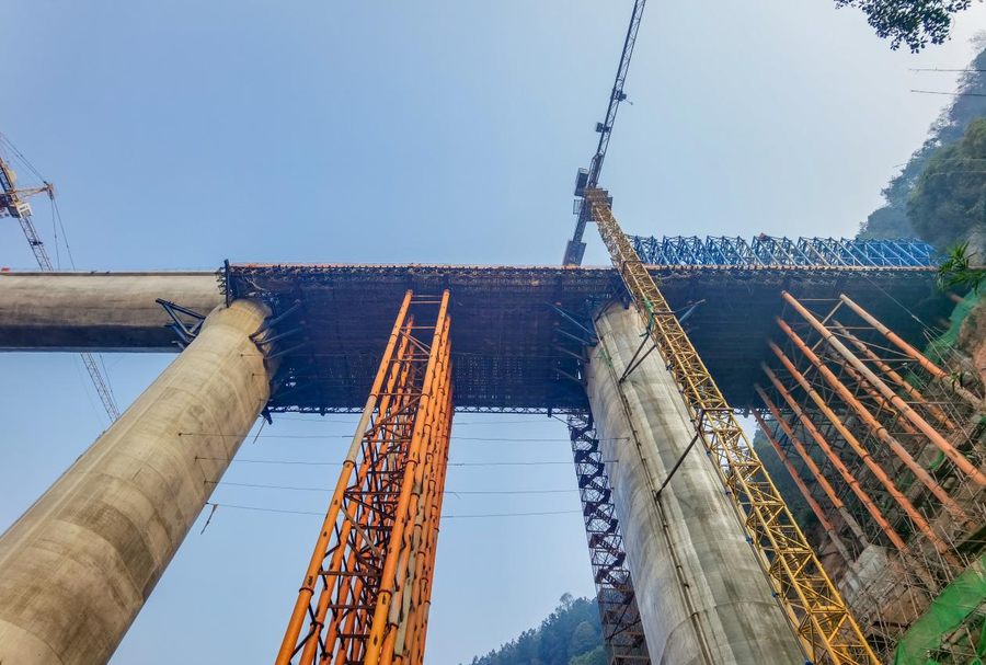 會詩溝渡槽位于宜賓市翠屏區思坡鎮會詩村,是向家壩灌區工程北總干渠第二流量段。該渡槽全長240米,共6跨,單跨最高高度為76米,槽身為薄壁U型結構,是向家壩灌區北總干渠一期一步工程最高渡槽,也是項目建設的重難點控制性工程。