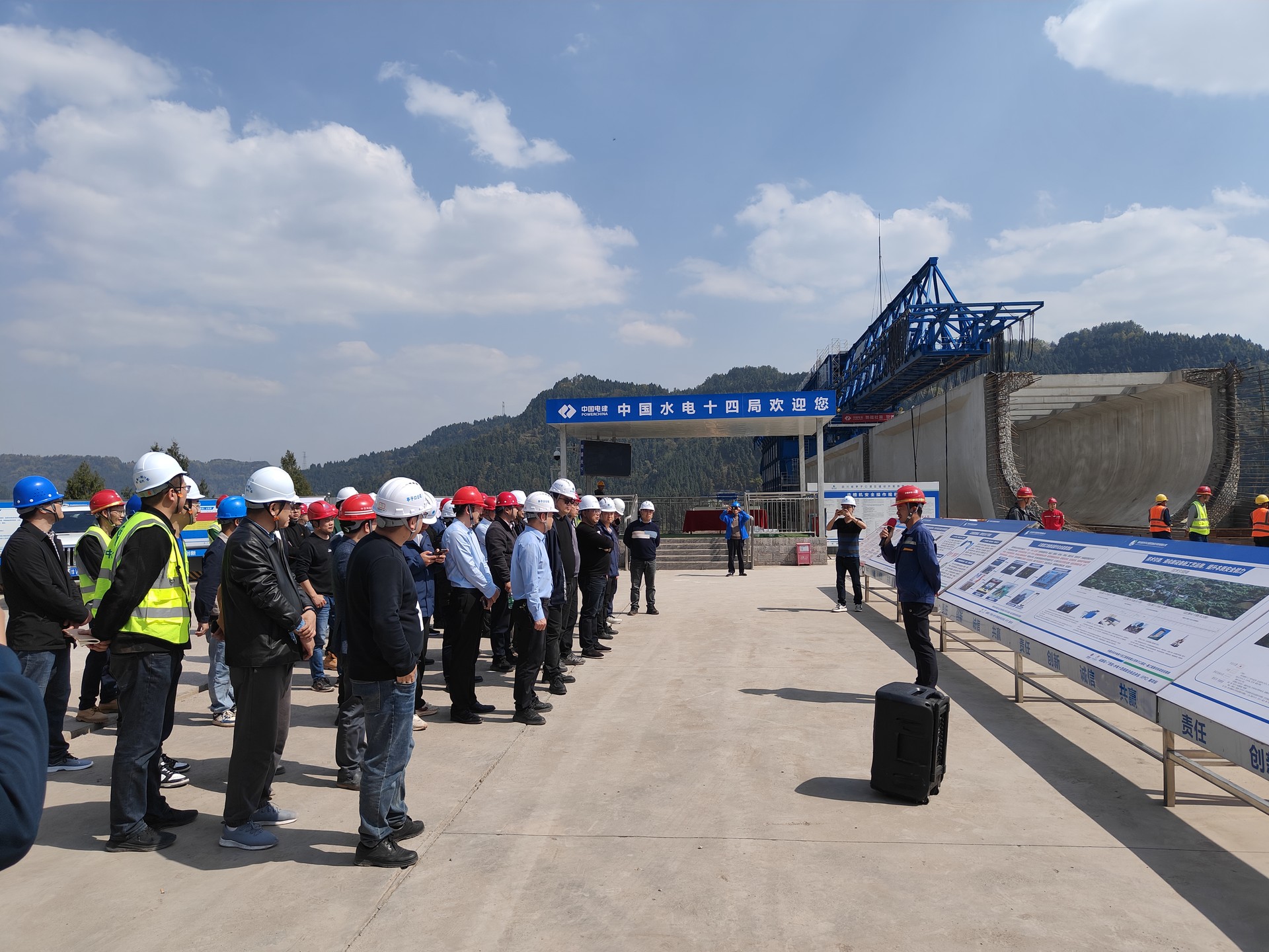 參會(huì)人員在唐家溝渡槽施工現(xiàn)場(chǎng)實(shí)地參觀學(xué)習(xí),詳細(xì)聽(tīng)取關(guān)于渡槽建設(shè)的介紹,深入了解了渡槽設(shè)計(jì)理念、施工難點(diǎn)、技術(shù)創(chuàng)新、遇到的實(shí)際問(wèn)題及解決方案等內(nèi)容。