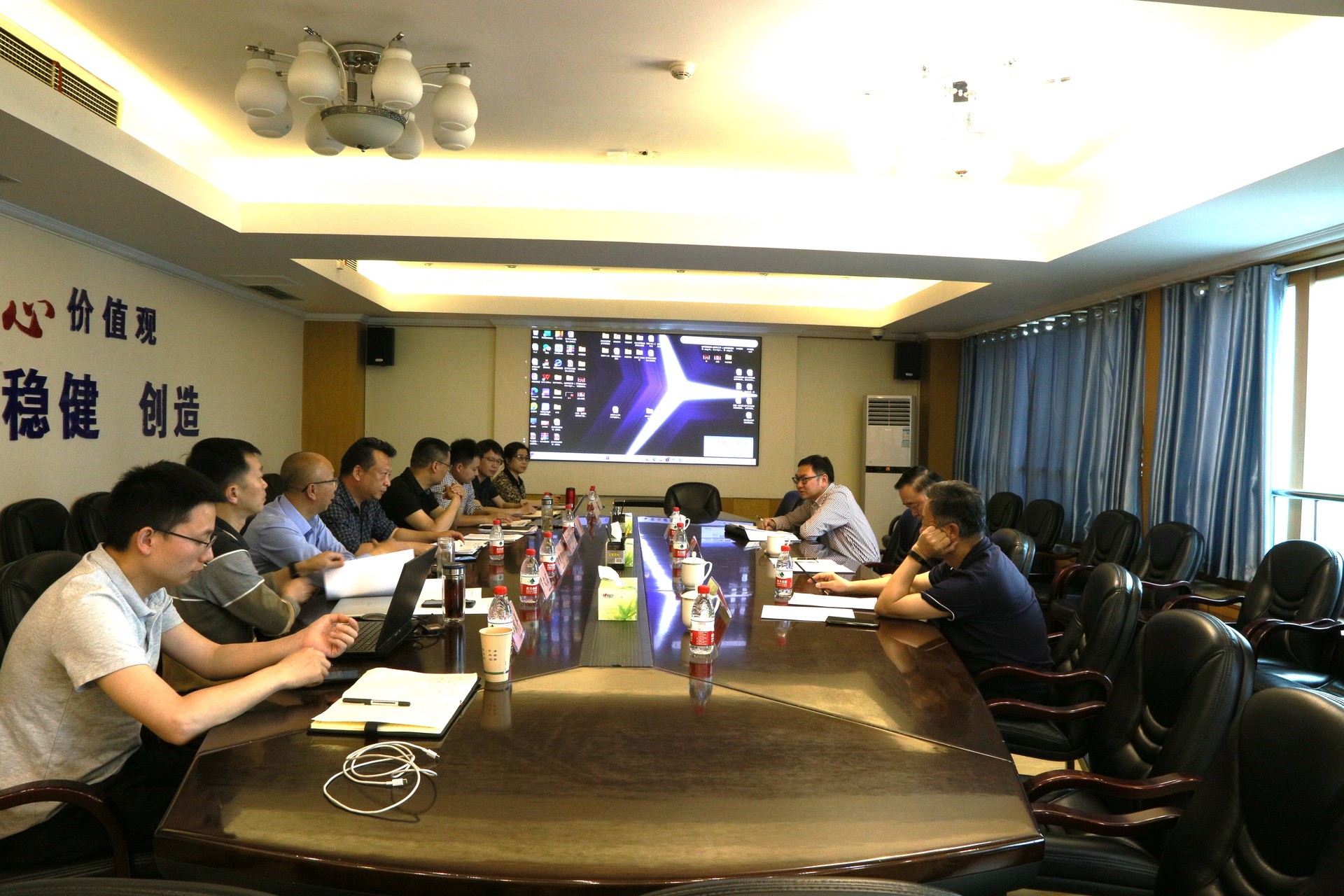 駱濤一行聽取了向家壩灌區北總干渠一期工程進展情況、安全生產標準化達標后管理和構建水利安全生產風險管控“六項機制”落實情況的匯報,對公司安全生產工作開展情況給予了充分肯定。座談會上,雙方就安全生產管理現狀、安全生產責任落實、標準化體系建設、施工現場“最后一米”、“六項機制”實施等方面進行了充分、深入的交流,并就如何做好安全生產標準化管理提出指導性意見。